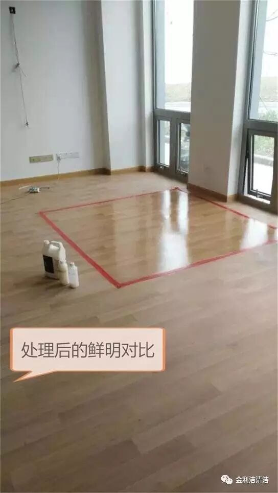 3、使用福利洁或丽得兰特中性洗涤剂用半干的拖布清洁表面的污染(滴落的胶水等可用福利洁强力起胶剂或丽得兰特T-80除胶剂去除胶渍)。
